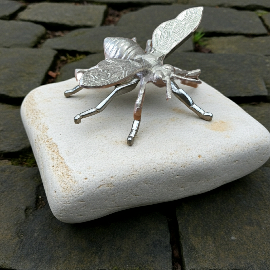 Esta pieza decorativa de metal, de aproximadamente 12 cm de tamaño, presenta una figura de abejorro que le da un toque único y vintage a cualquier espacio. Hecho de metal fundido, esta pieza es duradera y añadirá un toque especial a tu decoración.